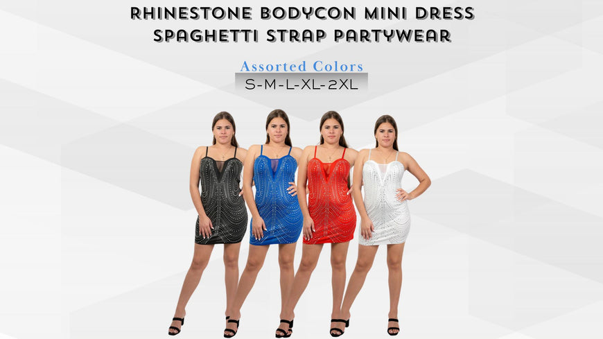 Chicaluv Wholesale - Women’s Rhinestone Bodycon Mini Dress – Spaghetti Strap Partywear - XV944
