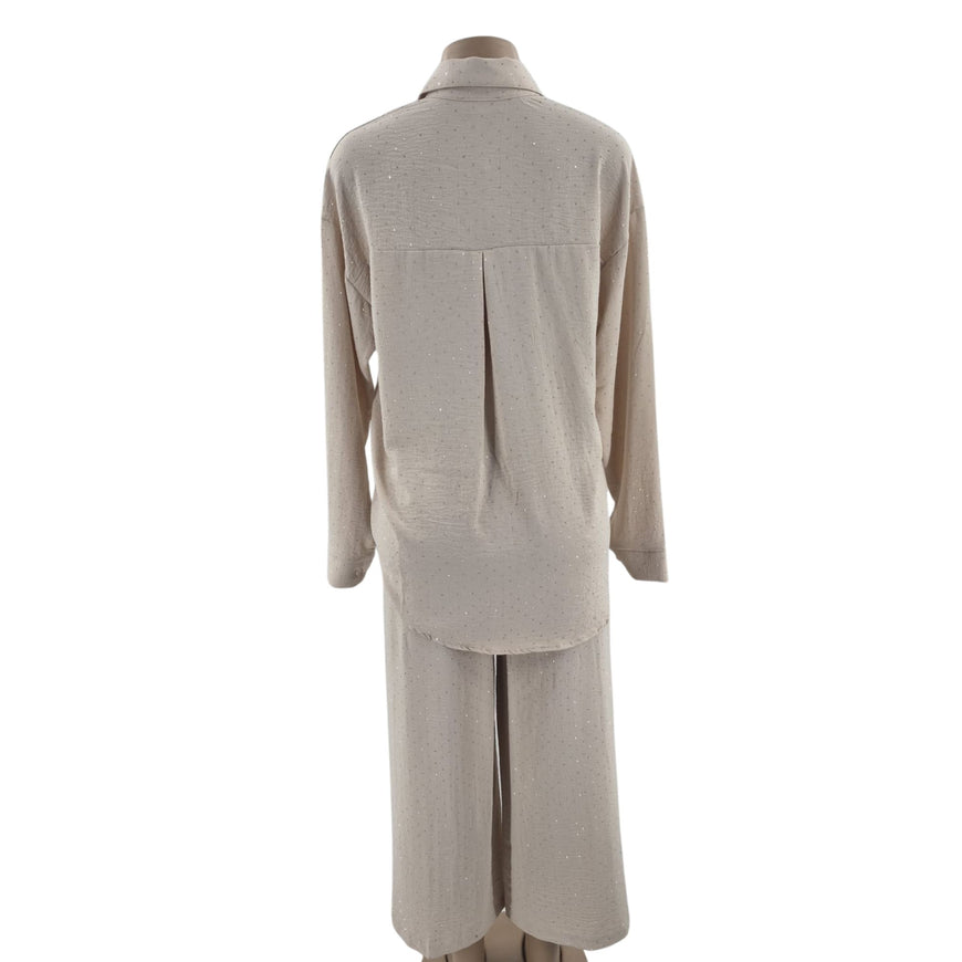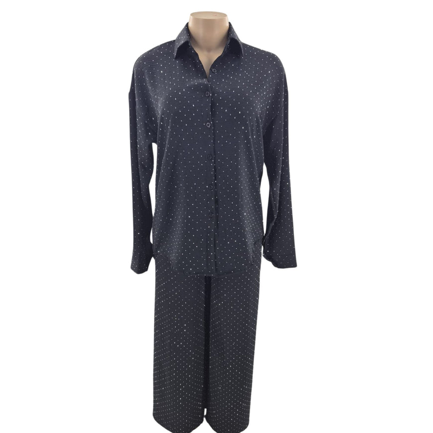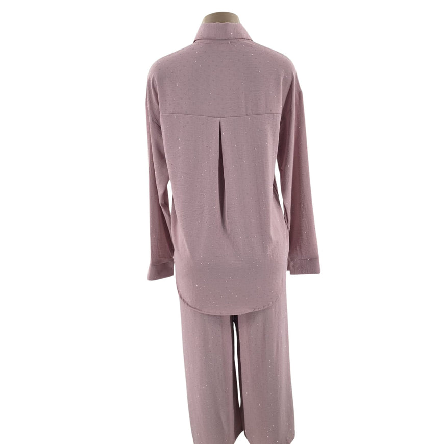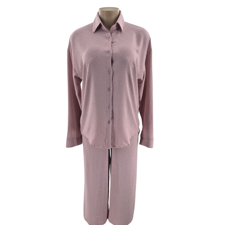 Introducing the Shirt Collar Co-Ord Set – where loungewear luxury meets polished comfort. This two-piece ensemble blends the ease of sleepwear with the sophistication of ready-to-wear, featuring a slip-on collared top paired with flowing relaxed trousers. Whether you're working from home, enjoying a lazy Sunday, or needing presentable pajamas for guests, this set keeps you comfortably put-together without trying.