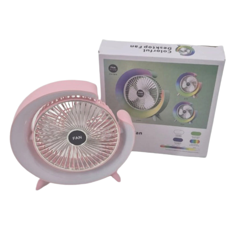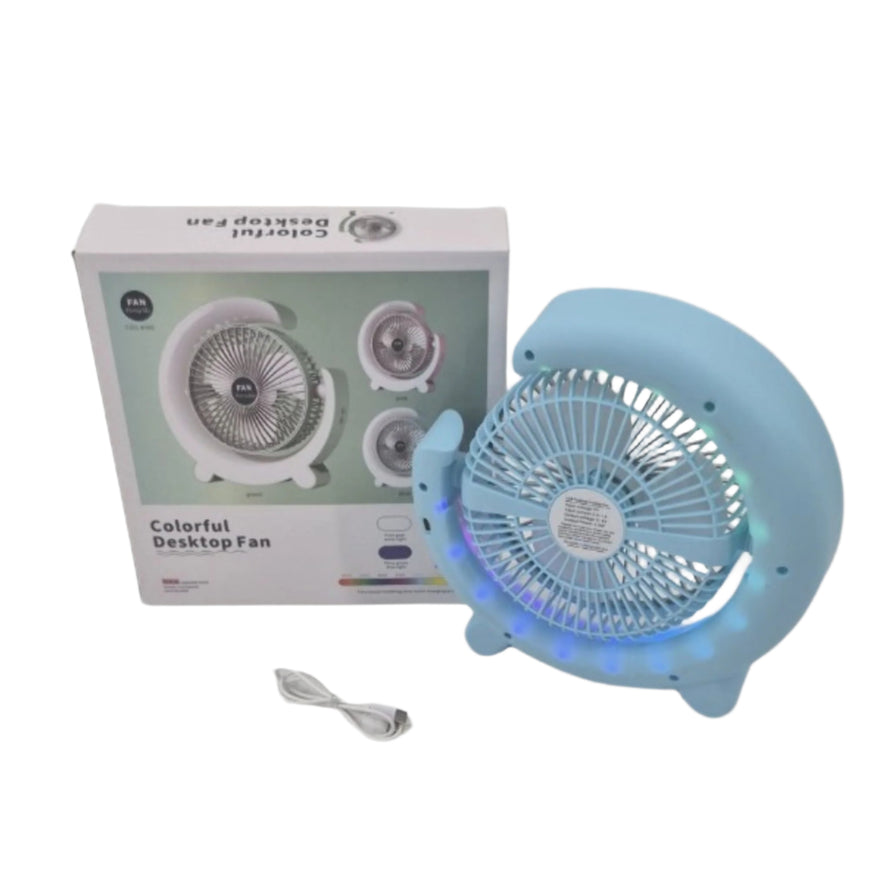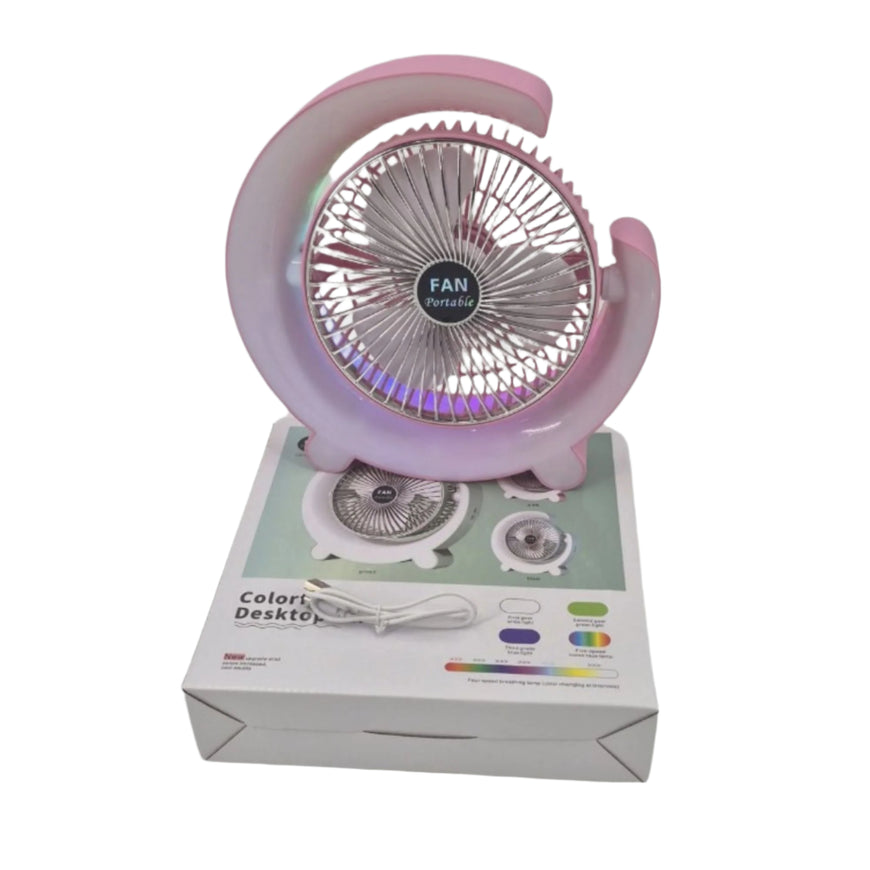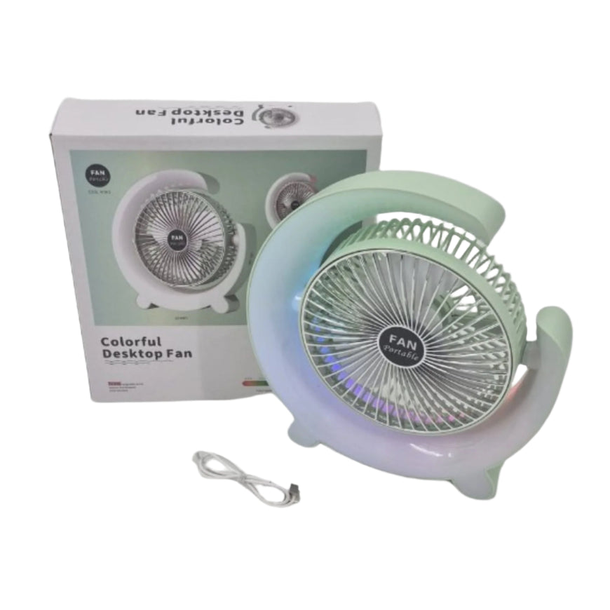 Familicasa - Stylish LED Desk Fan – Portable Colorful Quiet Fan with Soft Light & USB Power