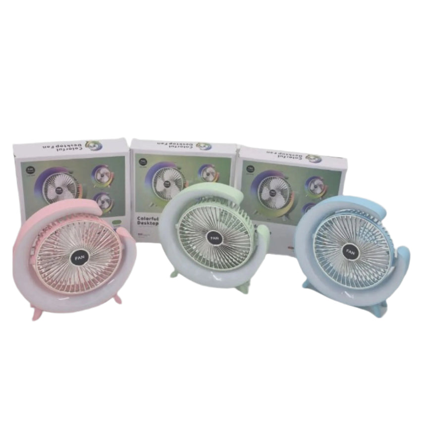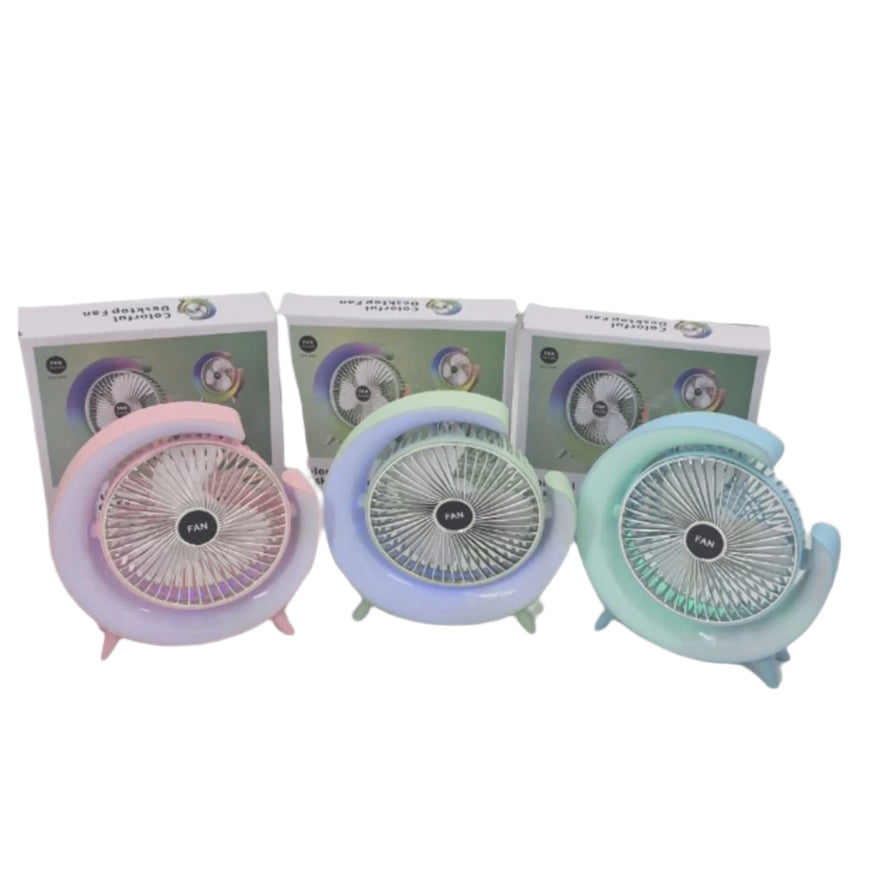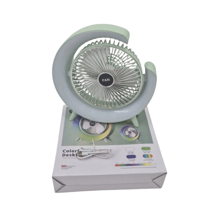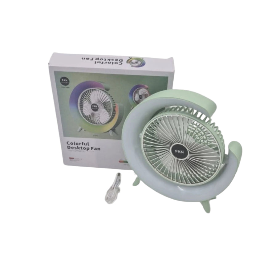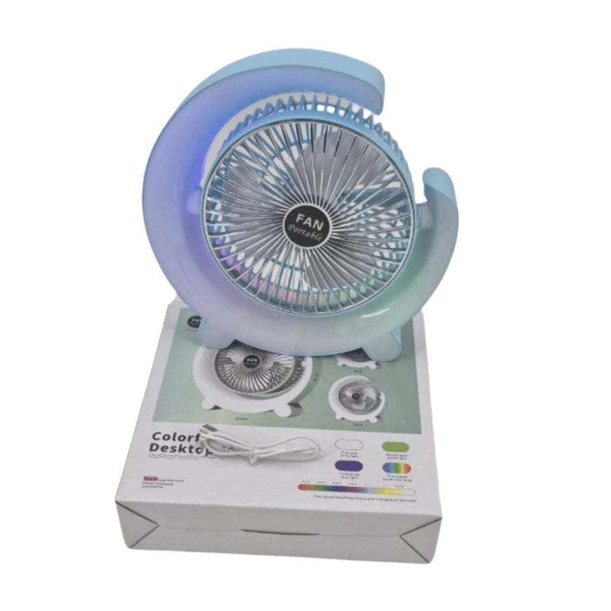 Familicasa - Stylish LED Desk Fan – Portable Colorful Quiet Fan with Soft Light & USB Power