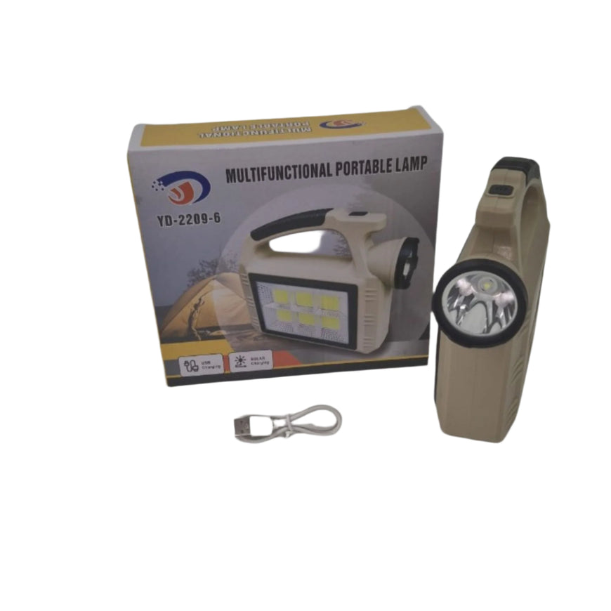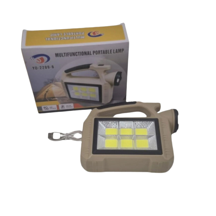 Illuminate your space with the Multifunctional LED Rechargeable Work Lamp (Model YD-2209-6) — a compact, reliable lighting solution for all situations. Built with a powerful front-facing LED panel and an additional side spotlight, this lamp offers wide coverage and focused lighting as needed. The ergonomic handle ensures easy grip and carry, while the USB charging feature keeps it ready whenever you are. Whether you're camping, repairing at night, or preparing for emergencies, this lamp delivers dependable brightness with every use.