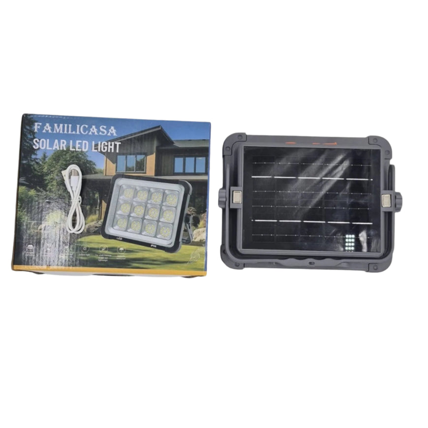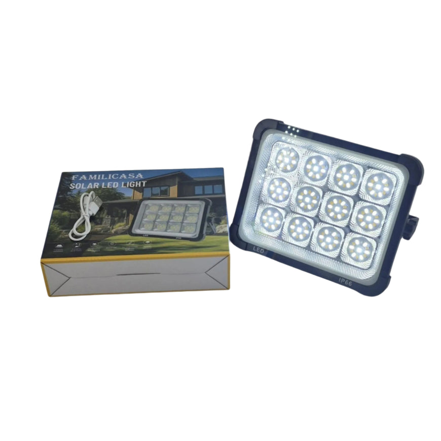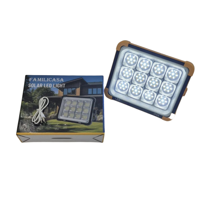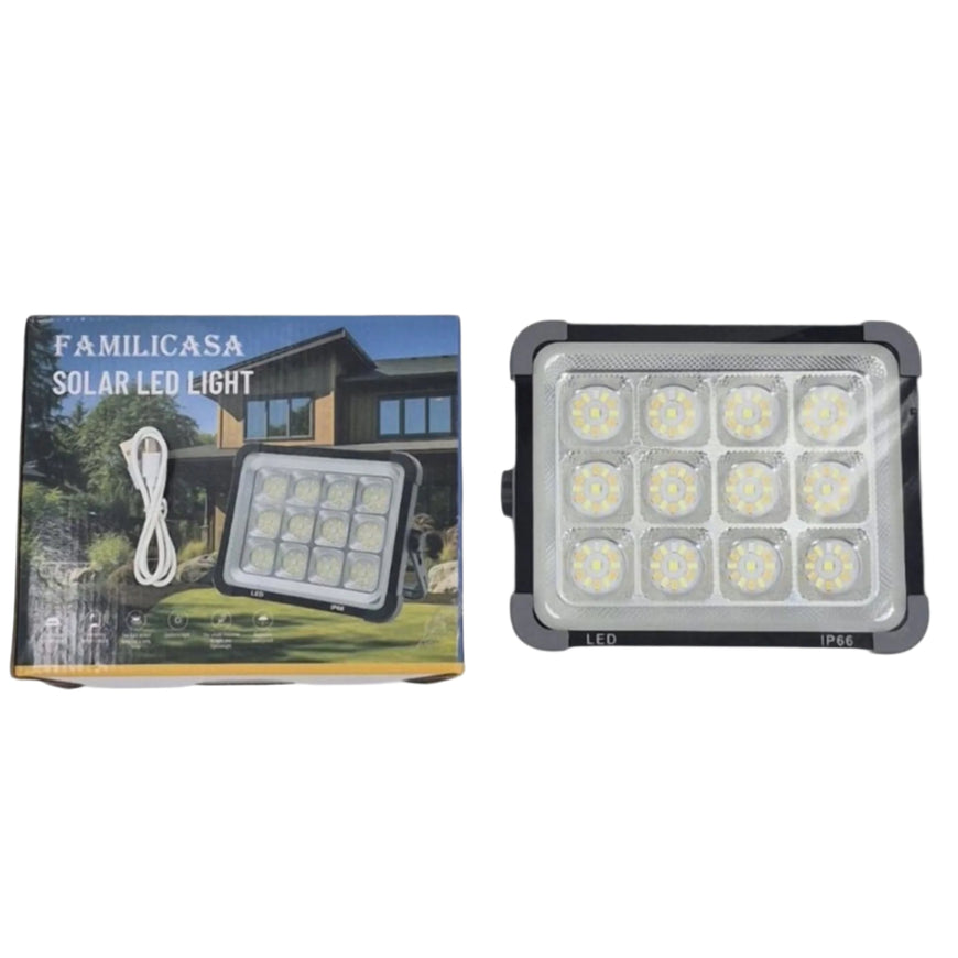 Brighten up your outdoors with the FAMILICASA Solar LED Flood Light, designed for powerful illumination and year-round reliability. This compact yet robust 12-LED flood lamp delivers wide-angle coverage, making it perfect for patios, gardens, walkways, and security zones. Built with an IP66-rated waterproof body, it’s ready for all weather conditions. Rechargeable via solar panel or USB, this lamp ensures energy-efficient lighting with zero electricity cost.