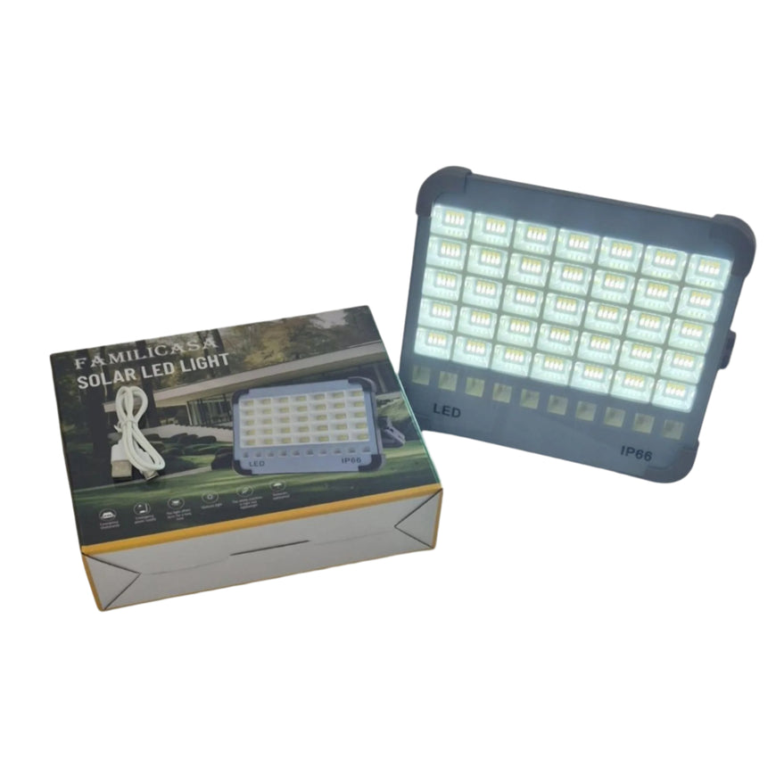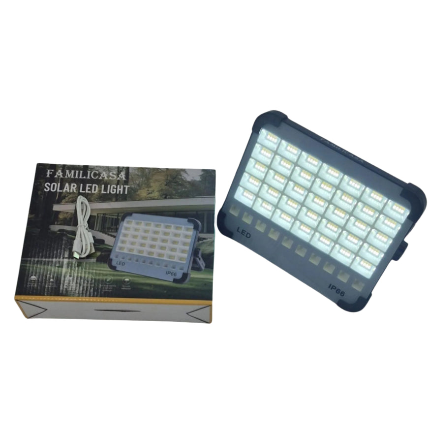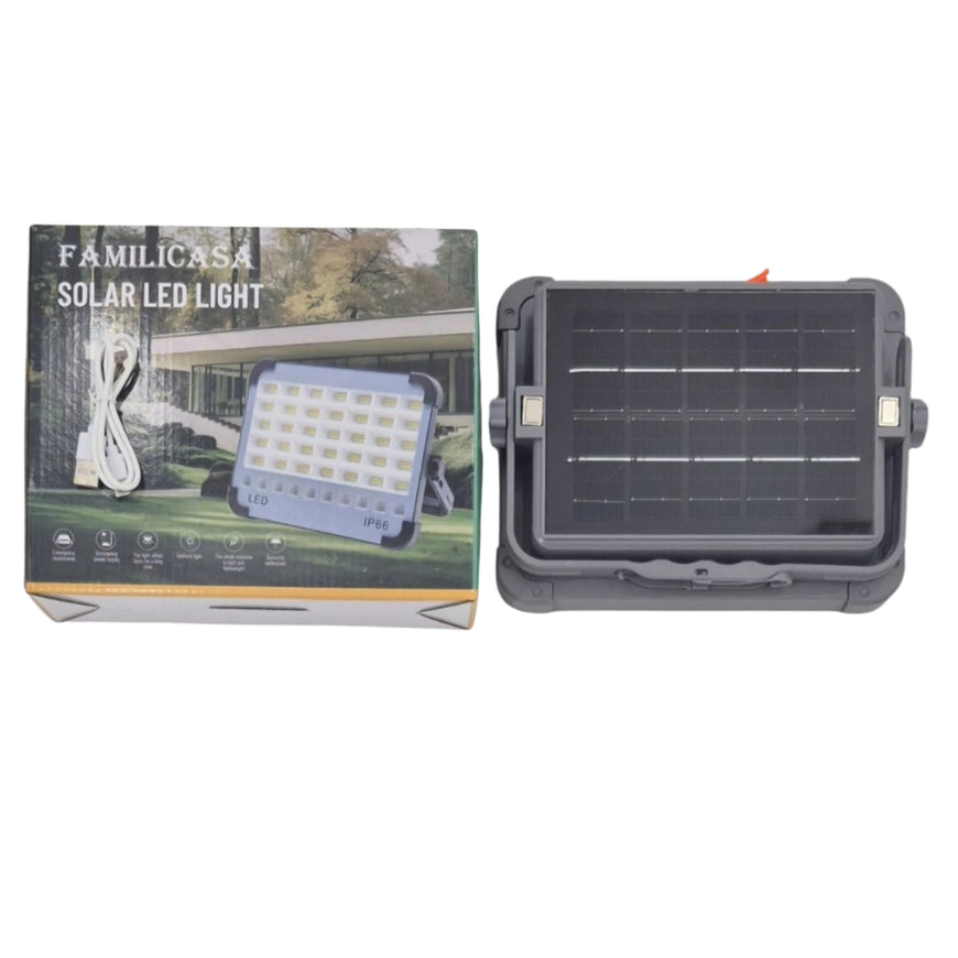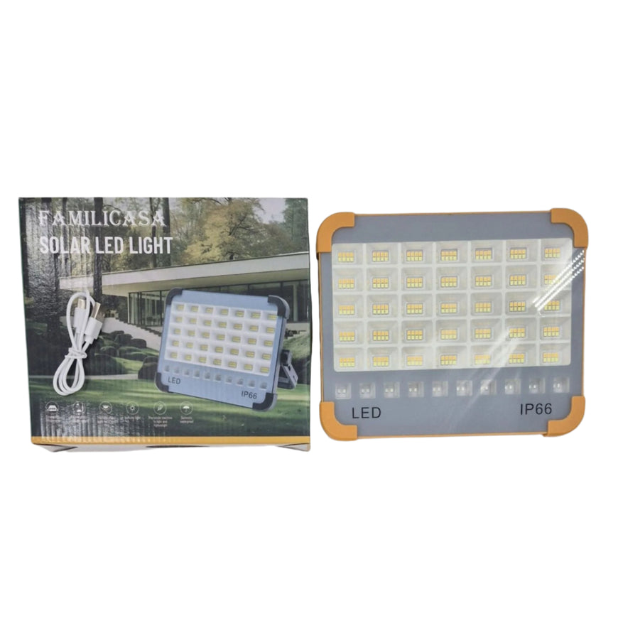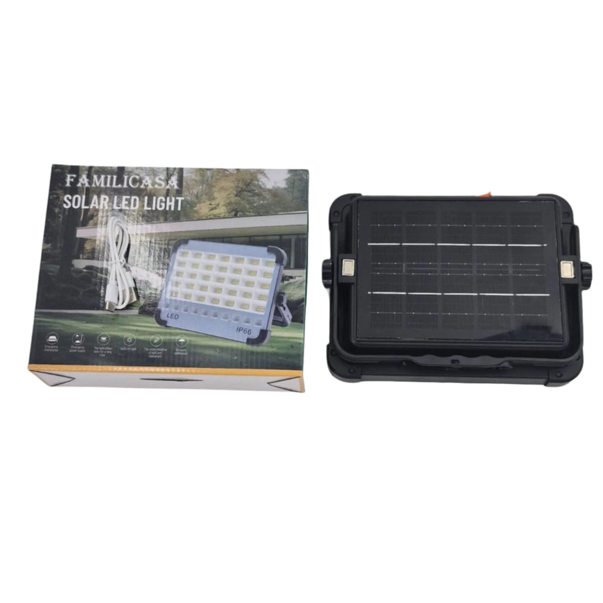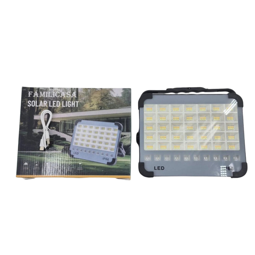 Familicasa - 200W Portable Solar LED Floodlight – IP66 Waterproof Emergency Light with ABS Aluminum Body & Hanging Hook for Camping & Outdoor Use