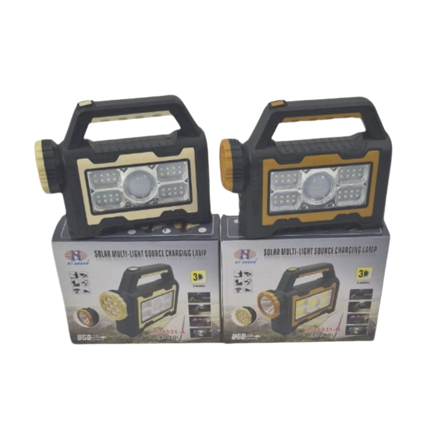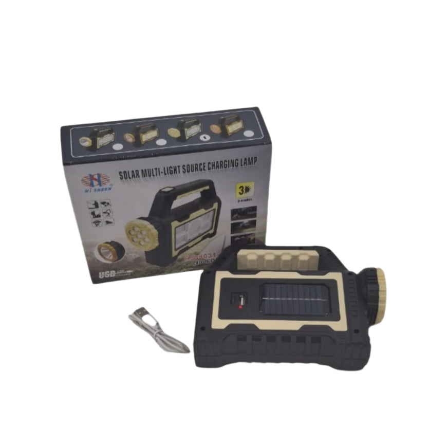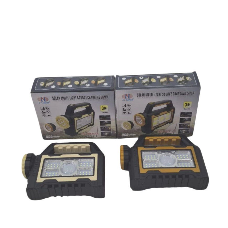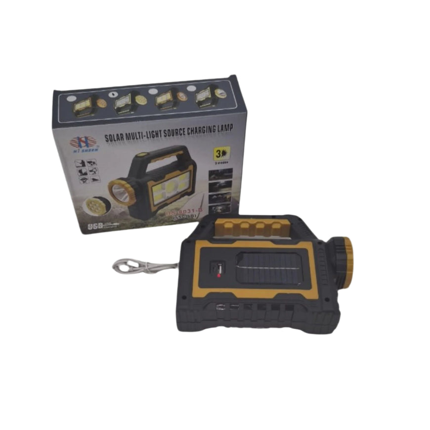 Power up your lighting game with the Solar Multi-Light Rechargeable LED Lamp, engineered for tough tasks and outdoor reliability. This compact yet powerful lamp features a high-intensity front LED panel with multiple light modes and a side spotlight for focused illumination. Equipped with solar and USB charging options, it ensures you're never left in the dark. The durable build and ergonomic handle make it easy to carry and position, making it perfect for camping, hiking, roadside emergencies, and off-grid living.