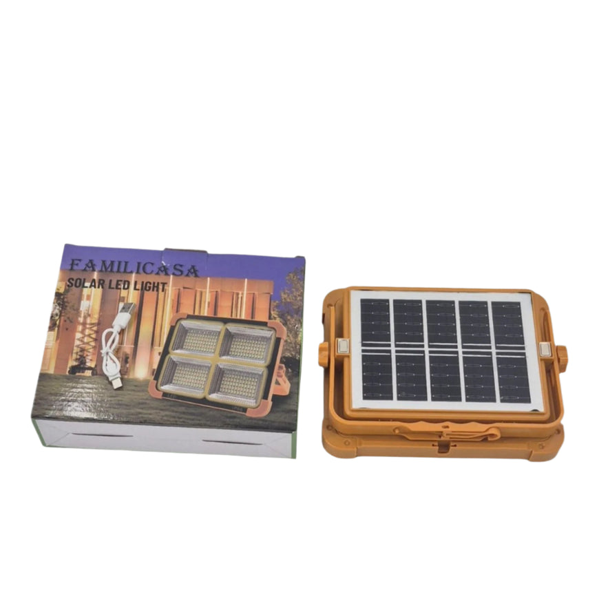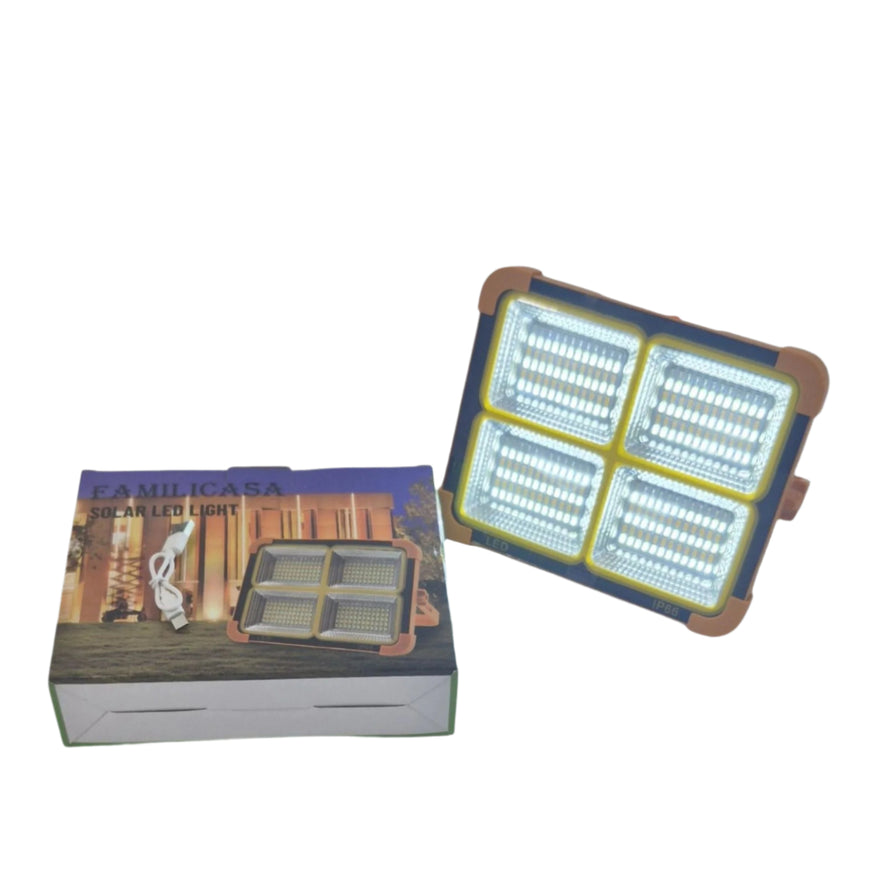 Familicasa 4-Panel Solar LED Light – Rechargeable Outdoor Flood Lamp with USB