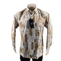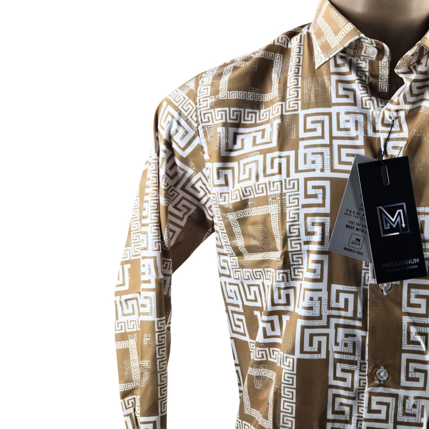 Megaannum - Geometric Print Slim Fit Long Sleeve Casual Shirt – Beige Gold