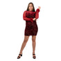 Step into the room and steal the show with the Women’s Long Sleeve Sequin Mini Dress with Feather Accents—a bold fusion of glamour and confidence. This isn’t just a dress, it’s a celebration. Made to shimmer under the lights and crafted for the woman who owns every entrance, this mini holiday party dress brings your party persona to life.