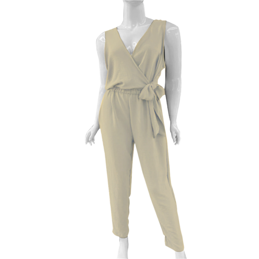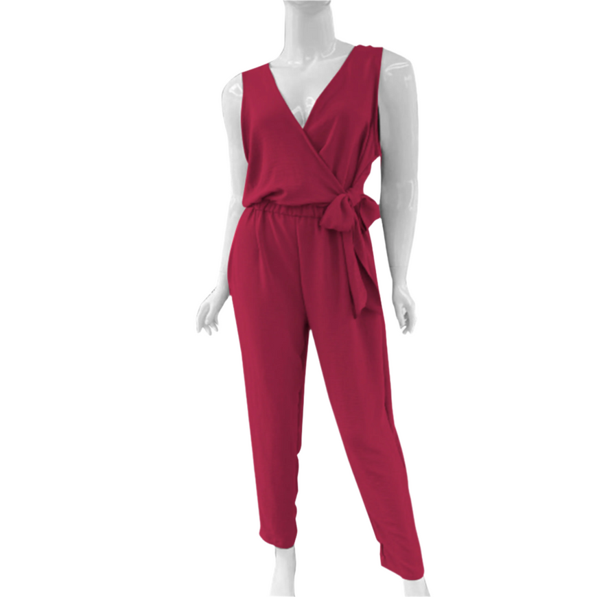 Women’s Sleeveless V-Neck Jumpsuit – Belted Wrap Style Romper – One-Piece Perfection for Any Occasion