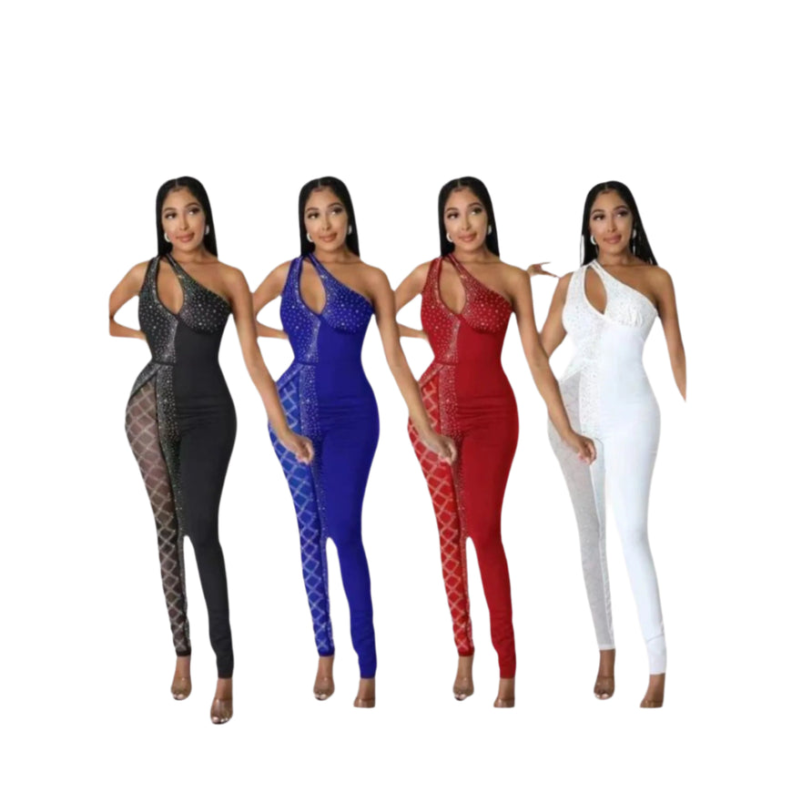 Step into the spotlight with the Women’s Rhinestone Cut-Out Jumpsuit – One-Shoulder Partywear. This luxurious jumpsuit combines the allure of a bodycon rhinestone mini dresses with the sophisticated edge of a jumpsuit, featuring sparkling rhinestone embellishments and a flattering keyhole neckline that enhances your natural beauty. The off-shoulder design adds a touch of elegance and sensuality, showcasing your shoulders and neckline for an unforgettable look.