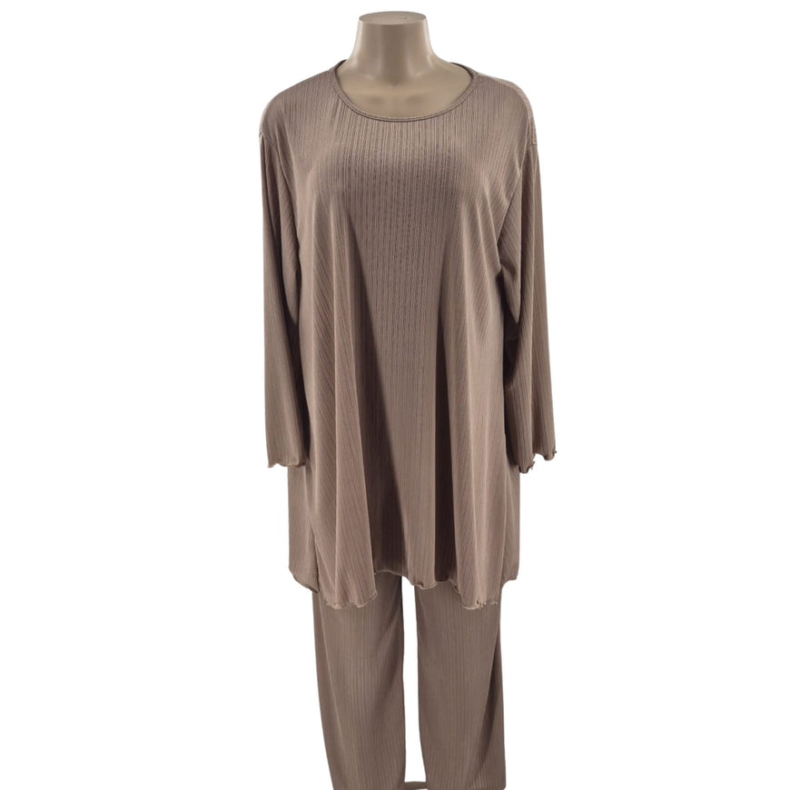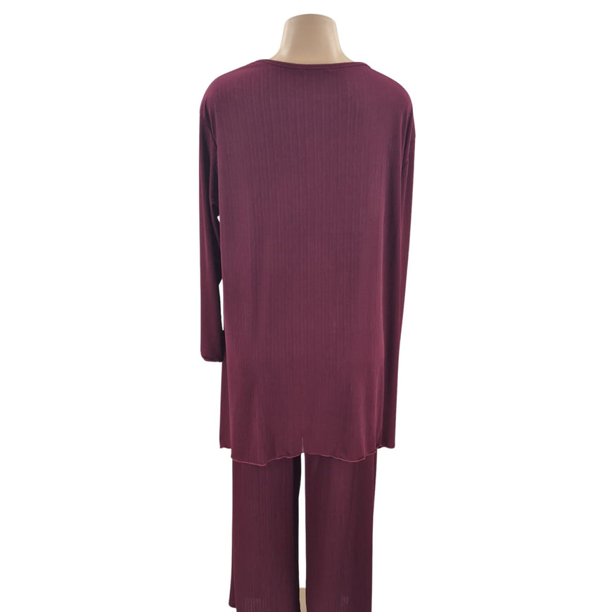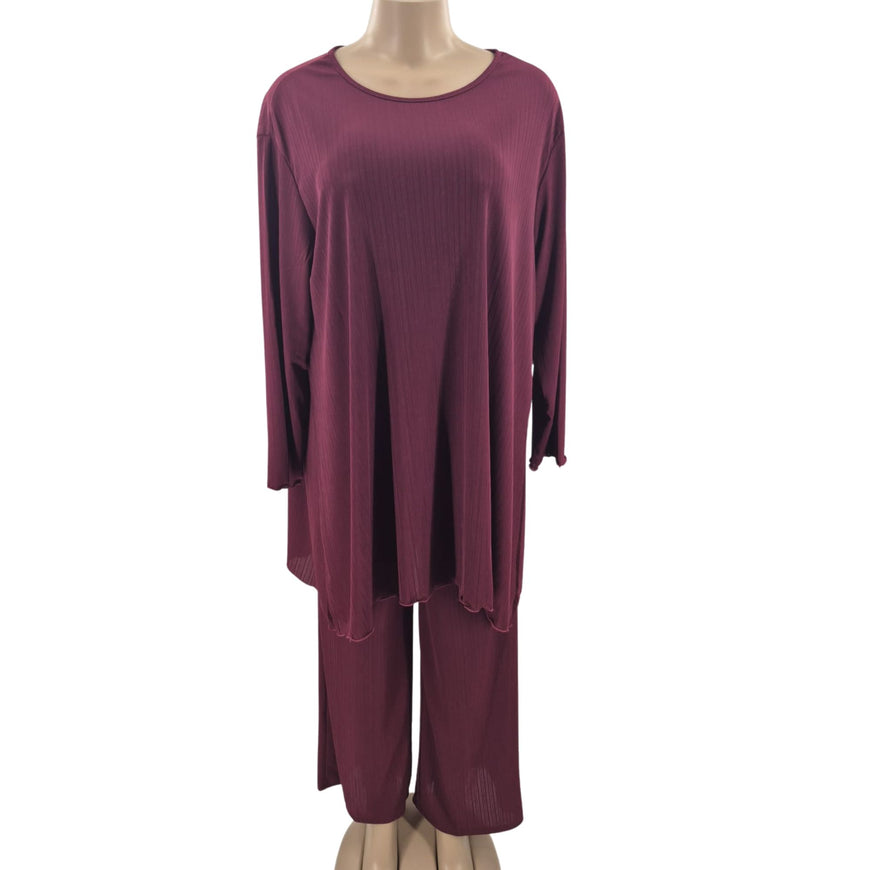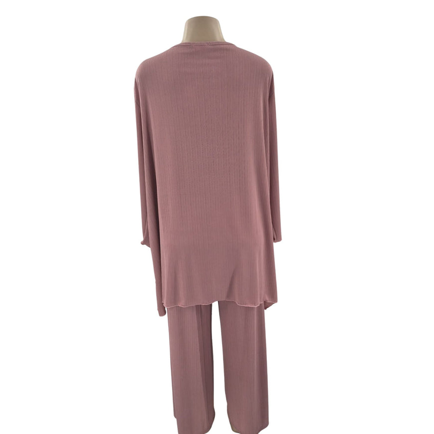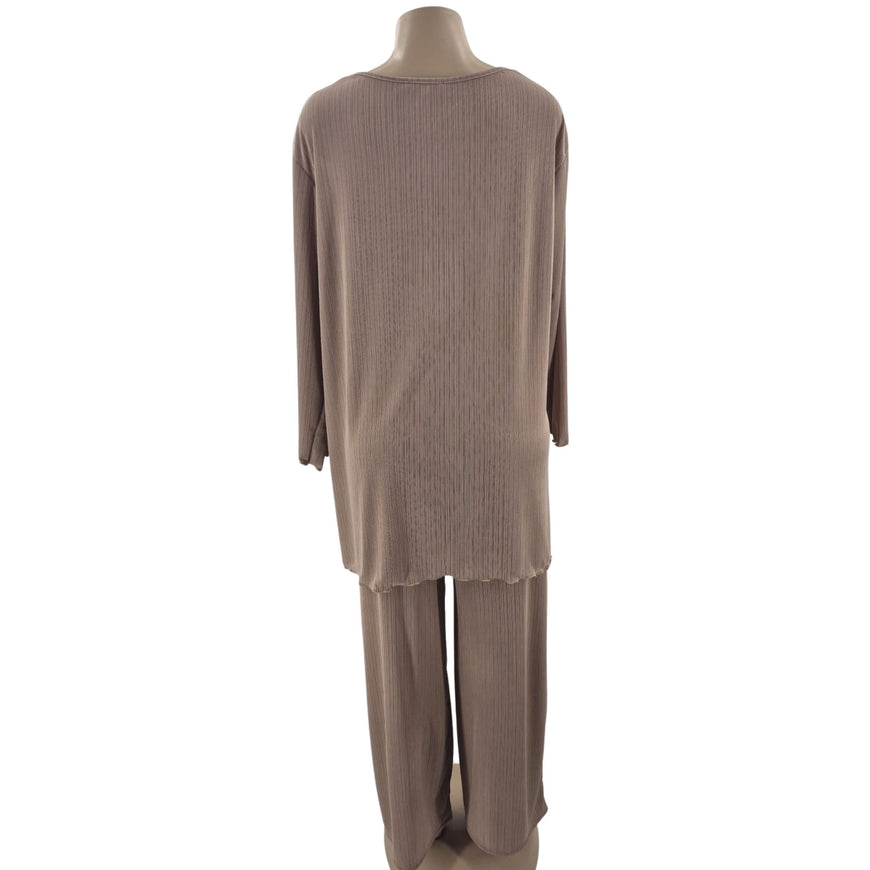 Chicaluv - Women's Plus Size Ribbed Knit Suit – Long-Sleeve Top & Solid Trousers Set XV0644