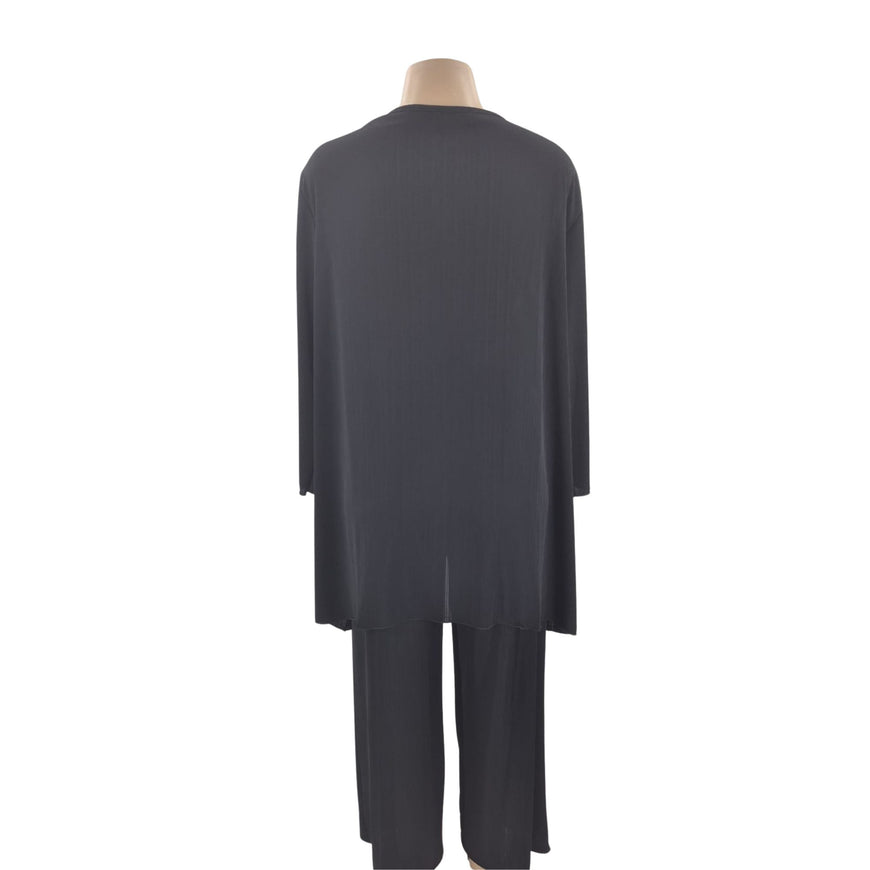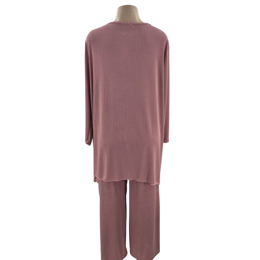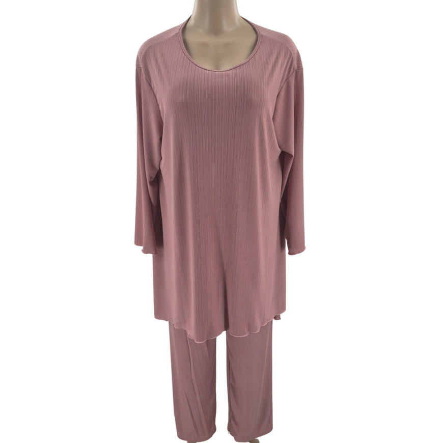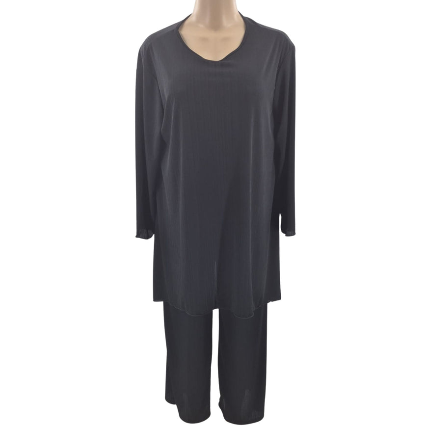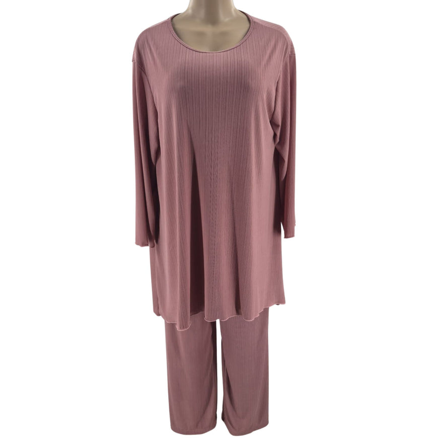 Chicaluv - Women's Plus Size Ribbed Knit Suit – Long-Sleeve Top & Solid Trousers Set XV0644