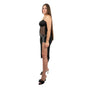 Chicaluv - Women's Rhinestone Mesh Side Slit Party Dress – V-Neck Spaghetti Strap Bodycon Evening Mini -XV936